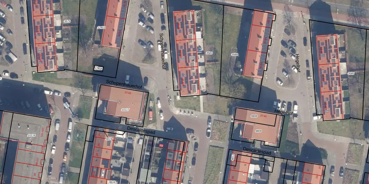 Het perceel waarop Schopenhauerhof 30 staat heeft een oppervlakte van 1427 m². Dit is een zeer groot perceel. De perceeloppervlakte wordt geregistreerd door het Kadaster. Gedetailleerde informatie over de maten van dit perceel kunt u vinden in het rapport Kadastrale kaart met maatvoering van Schopenhauerhof 30.