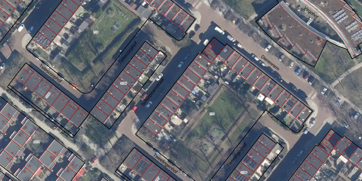 Het perceel waarop Schorpioenstraat 11 staat heeft een oppervlakte van 3711 m². Dit is een zeer groot perceel. De perceeloppervlakte wordt geregistreerd door het Kadaster. Gedetailleerde informatie over de maten van dit perceel kunt u vinden in het rapport Kadastrale kaart met maatvoering van Schorpioenstraat 11.