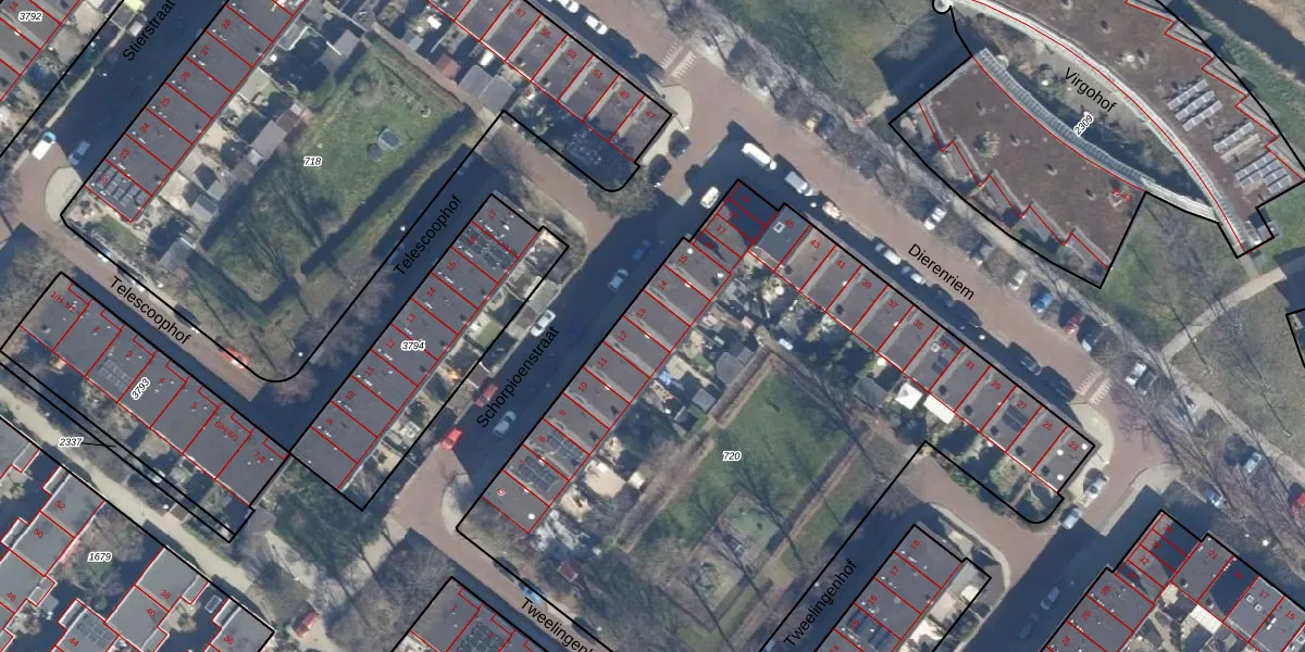 Het perceel waarop Schorpioenstraat 13 staat heeft een oppervlakte van 3711 m². Dit is een zeer groot perceel. De perceeloppervlakte wordt geregistreerd door het Kadaster. Gedetailleerde informatie over de maten van dit perceel kunt u vinden in het rapport Kadastrale kaart met maatvoering van Schorpioenstraat 13.