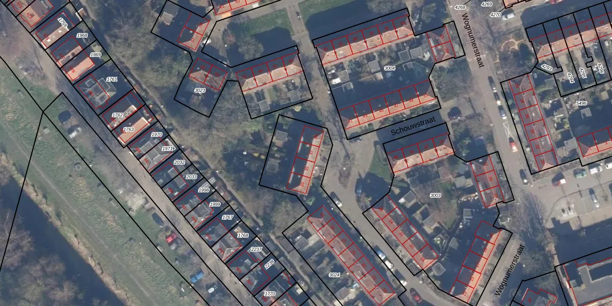 Het perceel waarop Schouwstraat 37 staat heeft een oppervlakte van 1597 m². Dit is een zeer groot perceel. De perceeloppervlakte wordt geregistreerd door het Kadaster. Gedetailleerde informatie over de maten van dit perceel kunt u vinden in het rapport Kadastrale kaart met maatvoering van Schouwstraat 37.