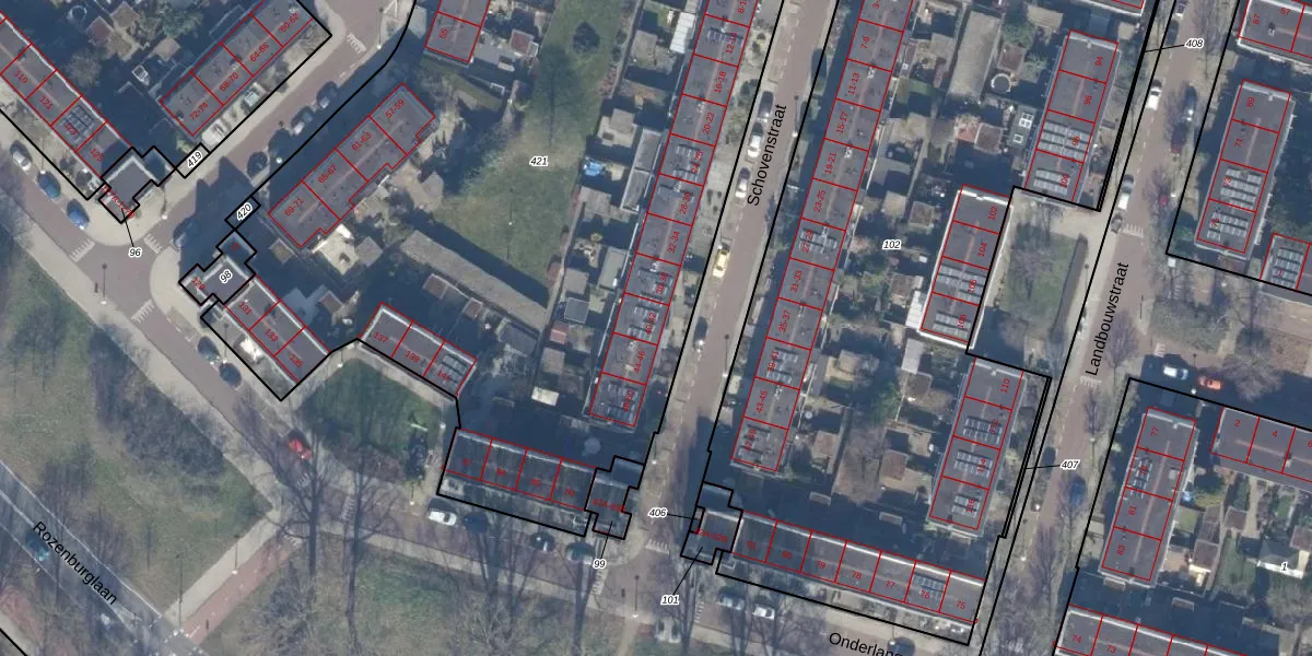 Het perceel waarop Schovenstraat 42 staat heeft een oppervlakte van 6090 m². Dit is een zeer groot perceel. De perceeloppervlakte wordt geregistreerd door het Kadaster. Gedetailleerde informatie over de maten van dit perceel kunt u vinden in het rapport Kadastrale kaart met maatvoering van Schovenstraat 42.