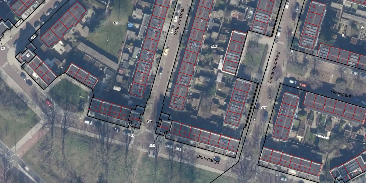 Het perceel waarop Schovenstraat 45 staat heeft een oppervlakte van 4780 m². Dit is een zeer groot perceel. De perceeloppervlakte wordt geregistreerd door het Kadaster. Gedetailleerde informatie over de maten van dit perceel kunt u vinden in het rapport Kadastrale kaart met maatvoering van Schovenstraat 45.