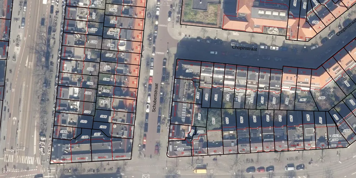 Het perceel waarop Schubertstraat 17-H staat heeft een oppervlakte van 198 m². Dit is een middelgroot perceel. De perceeloppervlakte wordt geregistreerd door het Kadaster. Gedetailleerde informatie over de maten van dit perceel kunt u vinden in het rapport Kadastrale kaart met maatvoering van Schubertstraat 17-H.