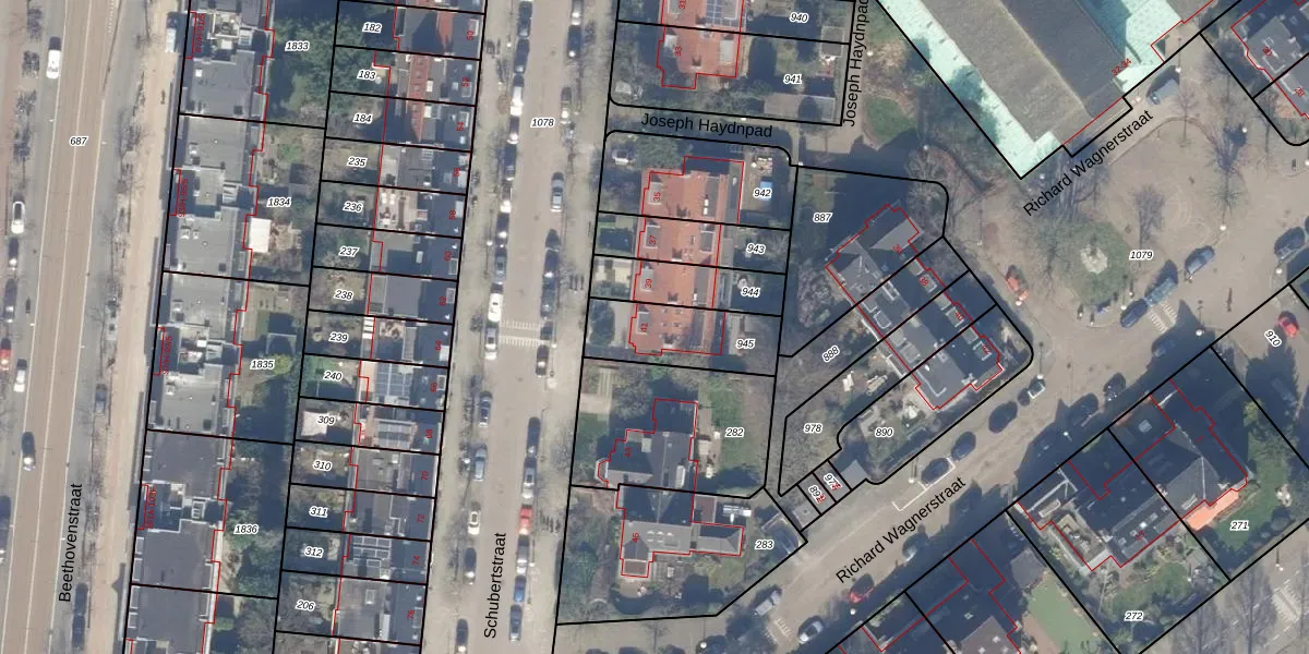 Het perceel waarop Schubertstraat 41 staat heeft een oppervlakte van 282 m². Dit is een middelgroot perceel. De perceeloppervlakte wordt geregistreerd door het Kadaster. Gedetailleerde informatie over de maten van dit perceel kunt u vinden in het rapport Kadastrale kaart met maatvoering van Schubertstraat 41.