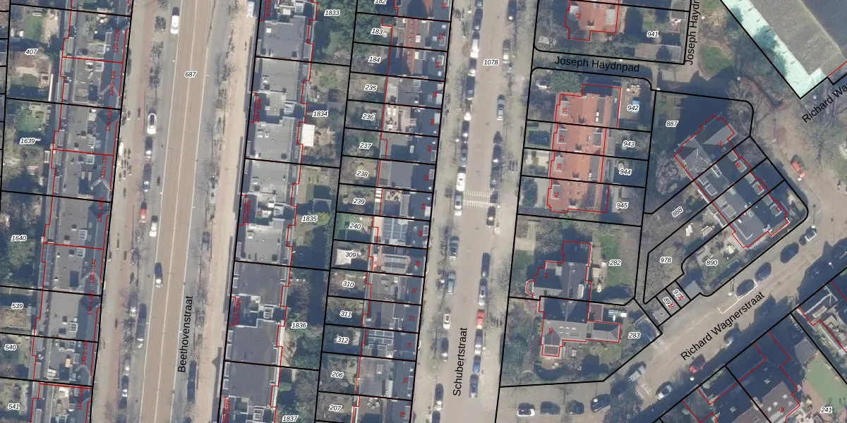 Het perceel waarop Schubertstraat 64 staat heeft een oppervlakte van 148 m². Dit is een middelgroot perceel. De perceeloppervlakte wordt geregistreerd door het Kadaster. Gedetailleerde informatie over de maten van dit perceel kunt u vinden in het rapport Kadastrale kaart met maatvoering van Schubertstraat 64.