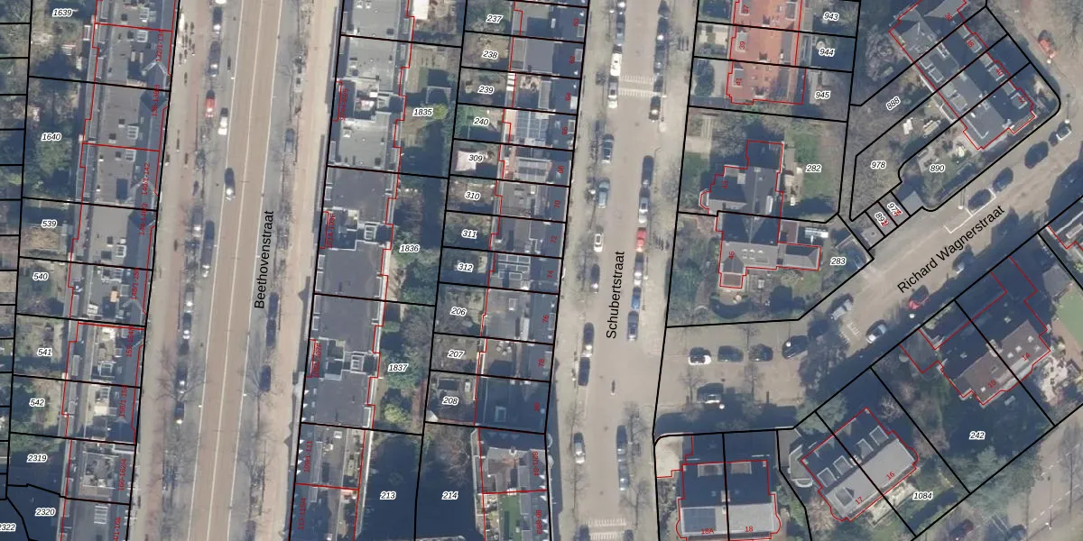 Het perceel waarop Schubertstraat 74 staat heeft een oppervlakte van 151 m². Dit is een middelgroot perceel. De perceeloppervlakte wordt geregistreerd door het Kadaster. Gedetailleerde informatie over de maten van dit perceel kunt u vinden in het rapport Kadastrale kaart met maatvoering van Schubertstraat 74.