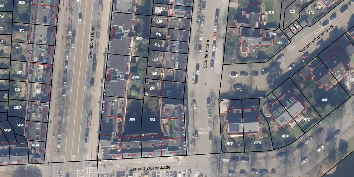 Gebruik de zoekbalk of klik op een perceel voor informatie over de adressen binnen dit perceel.