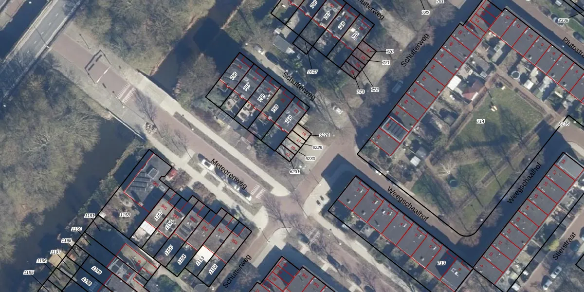 Het perceel waarop Schutterweg 15 staat heeft een oppervlakte van 19 m². Dit is een klein perceel. De perceeloppervlakte wordt geregistreerd door het Kadaster. Gedetailleerde informatie over de maten van dit perceel kunt u vinden in het rapport Kadastrale kaart met maatvoering van Schutterweg 15.