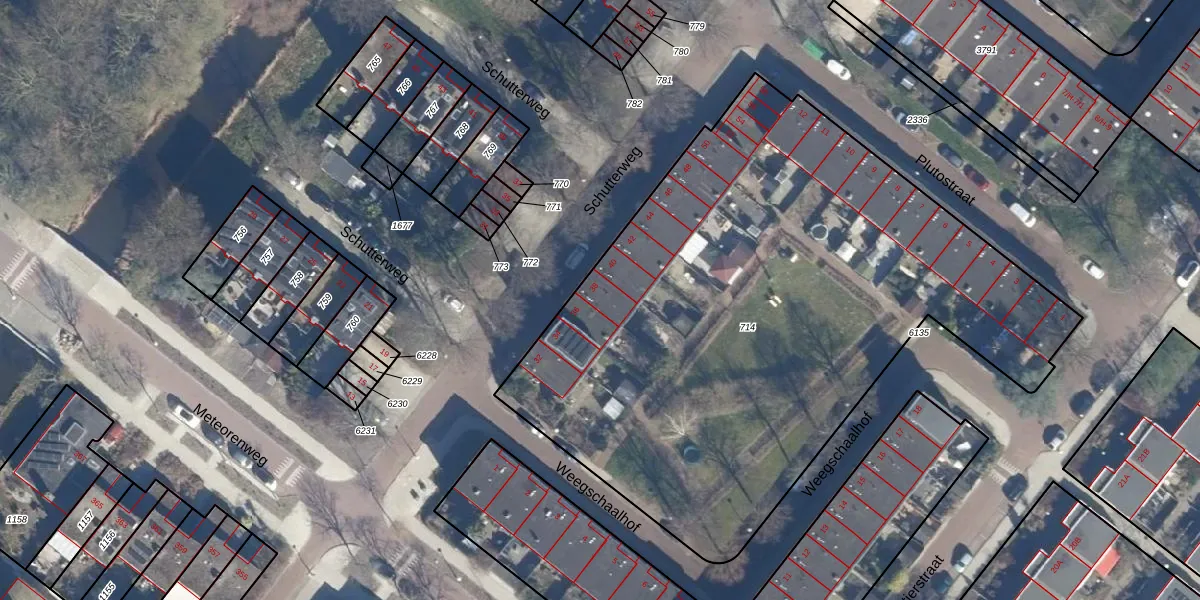 Schutterweg 38 is gelegen op kadastraal perceel ASD28AH714. Deze kadastrale aanduiding is uniek en wordt gebruikt door het Kadaster om eigendomsrechten en andere zakelijke rechten vast te leggen. Het perceel maakt onderdeel uit van de kadastrale gemeente Amsterdam.