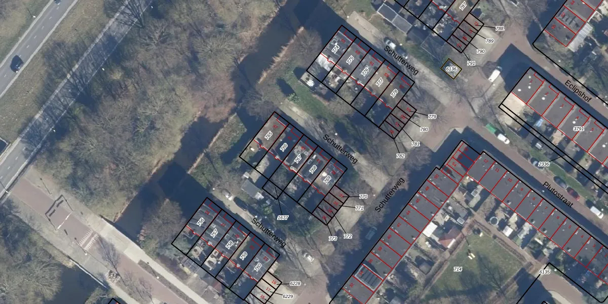 Gebruik de zoekbalk of klik op een perceel voor informatie over de adressen binnen dit perceel.