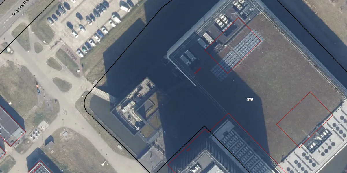Het perceel waarop Science Park 612 staat heeft een oppervlakte van 1,4 ha. Dit is een zeer groot perceel. De perceeloppervlakte wordt geregistreerd door het Kadaster. Gedetailleerde informatie over de maten van dit perceel kunt u vinden in het rapport Kadastrale kaart met maatvoering van Science Park 612.