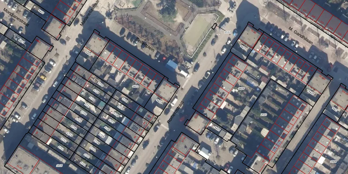 Het perceel waarop Seifertplein 14 staat heeft een oppervlakte van 216 m². Dit is een middelgroot perceel. De perceeloppervlakte wordt geregistreerd door het Kadaster. Gedetailleerde informatie over de maten van dit perceel kunt u vinden in het rapport Kadastrale kaart met maatvoering van Seifertplein 14.