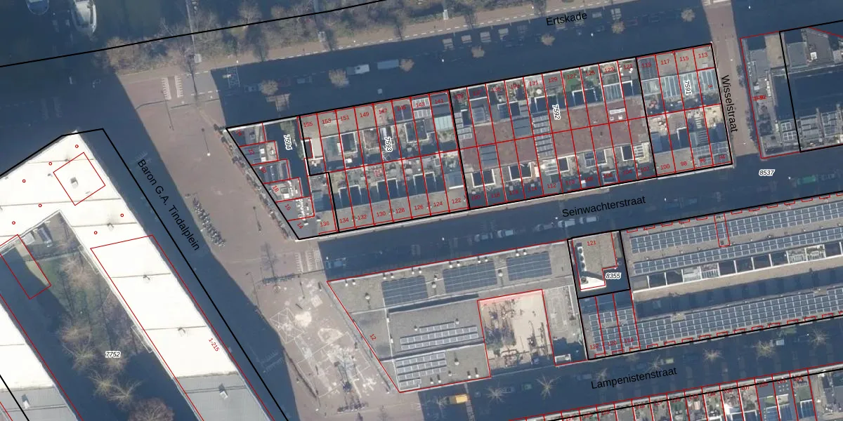 Het adres is gelegen op perceel 7593 in de sectie A en de kadastrale gemeente Amsterdam. De kadastrale aanduiding is aldus ASD02-A-7593. De gemiddelde perceelgrootte in Amsterdam is 2763,93 m². Dit perceel is kleiner: de perceeloppervlakte bedraagt 980 m². De grootste perceeloppervlakte in de kadastrale gemeente is 14,3 ha. De kleinste oppervlakte bedraagt 0 m². Op het perceel liggen in totaal 15 adressen. De huidige grenzen van het perceel zijn digitaal in de Basisregistratie Kadaster (BRK) geregistreerd op 11-10-2006.