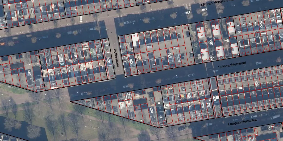 Het perceel waarop Seinwachterstraat 48 staat heeft een oppervlakte van 1184 m². Dit is een zeer groot perceel. De perceeloppervlakte wordt geregistreerd door het Kadaster. Gedetailleerde informatie over de maten van dit perceel kunt u vinden in het rapport Kadastrale kaart met maatvoering van Seinwachterstraat 48.