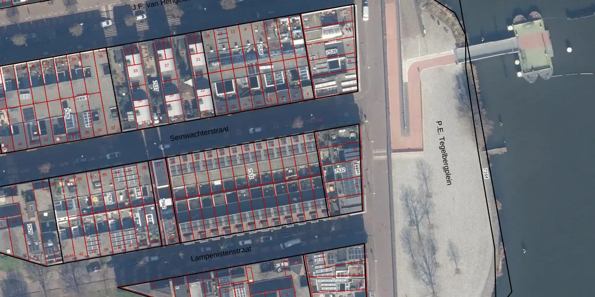 Seinwachterstraat 5 is gelegen op kadastraal perceel ASD02A7531. Deze kadastrale aanduiding is uniek en wordt gebruikt door het Kadaster om eigendomsrechten en andere zakelijke rechten vast te leggen. Het perceel maakt onderdeel uit van de kadastrale gemeente Amsterdam.