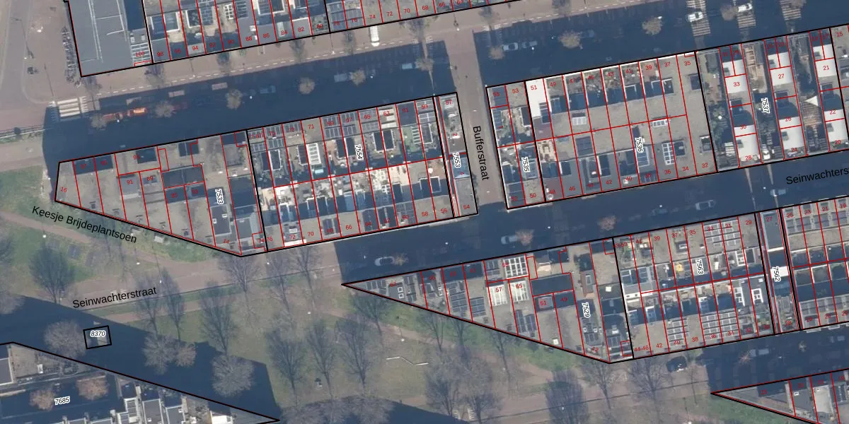 Het perceel waarop het adres ligt is ASD02-A-7554. De afkorting 'ASD02' staat voor kadastrale gemeente Amsterdam. Het perceel is kleiner dan gemiddeld in Amsterdam. Het perceel is 1305 m² groot, terwijl het gemiddelde ligt op 2763,93 m². Het grootste perceel in de kadastrale gemeente is 14,3 ha. Het kleinste perceel heeft een oppervlakte van 0 m². Op het perceel liggen in totaal 20 adressen. De laatste wijziging in het de Basisregistratie Kadaster (BRK) was op 11-10-2006.
