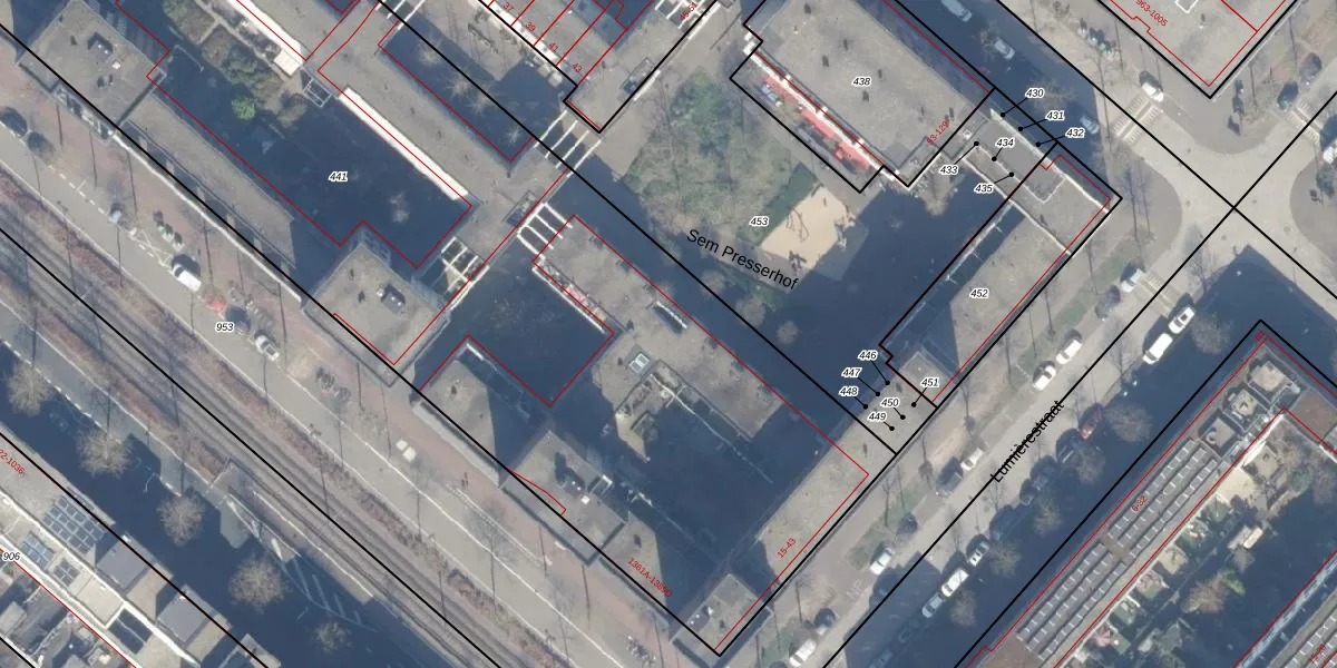 Het perceel waarop Sem Presserhof 102 staat heeft een oppervlakte van 7077 m². Dit is een zeer groot perceel. De perceeloppervlakte wordt geregistreerd door het Kadaster. Gedetailleerde informatie over de maten van dit perceel kunt u vinden in het rapport Kadastrale kaart met maatvoering van Sem Presserhof 102.