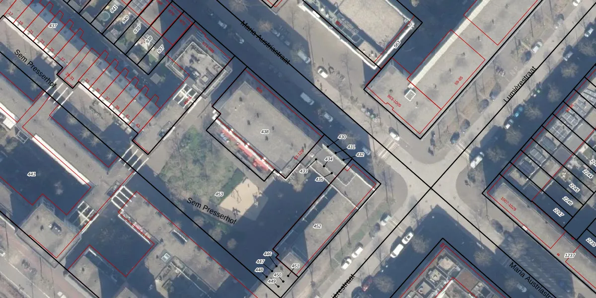 Het adres ligt op het perceel ASD41-AU-438, dat zich in de kadastrale gemeente Amsterdam bevindt. De gemiddelde perceelgrootte in Amsterdam is 7285,32 m². Dit perceel is kleiner: de perceeloppervlakte bedraagt 815 m². Het grootste perceel in de kadastrale gemeente is 2,75 km². Het kleinste perceel heeft een oppervlakte van 0 m². Er zijn 32 adressen aanwezig op het perceel. De laatste wijziging in het de Basisregistratie Kadaster (BRK) was op 31-03-2006.