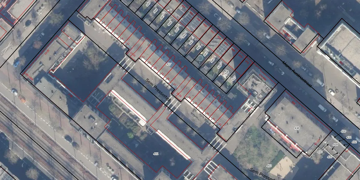 Sem Presserhof 29 is gelegen op kadastraal perceel ASD41AU437. Deze kadastrale aanduiding is uniek en wordt gebruikt door het Kadaster om eigendomsrechten en andere zakelijke rechten vast te leggen. Het perceel maakt onderdeel uit van de kadastrale gemeente Amsterdam.