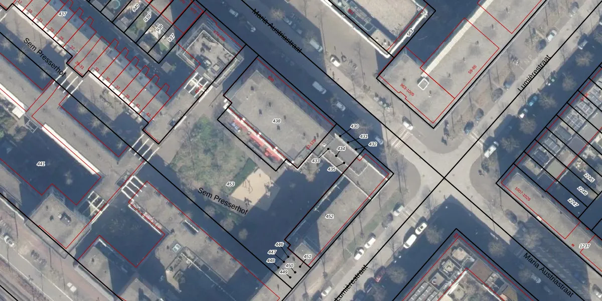 Sem Presserhof 65 is gelegen op kadastraal perceel ASD41AU438. Deze kadastrale aanduiding is uniek en wordt gebruikt door het Kadaster om eigendomsrechten en andere zakelijke rechten vast te leggen. Het perceel maakt onderdeel uit van de kadastrale gemeente Amsterdam.
