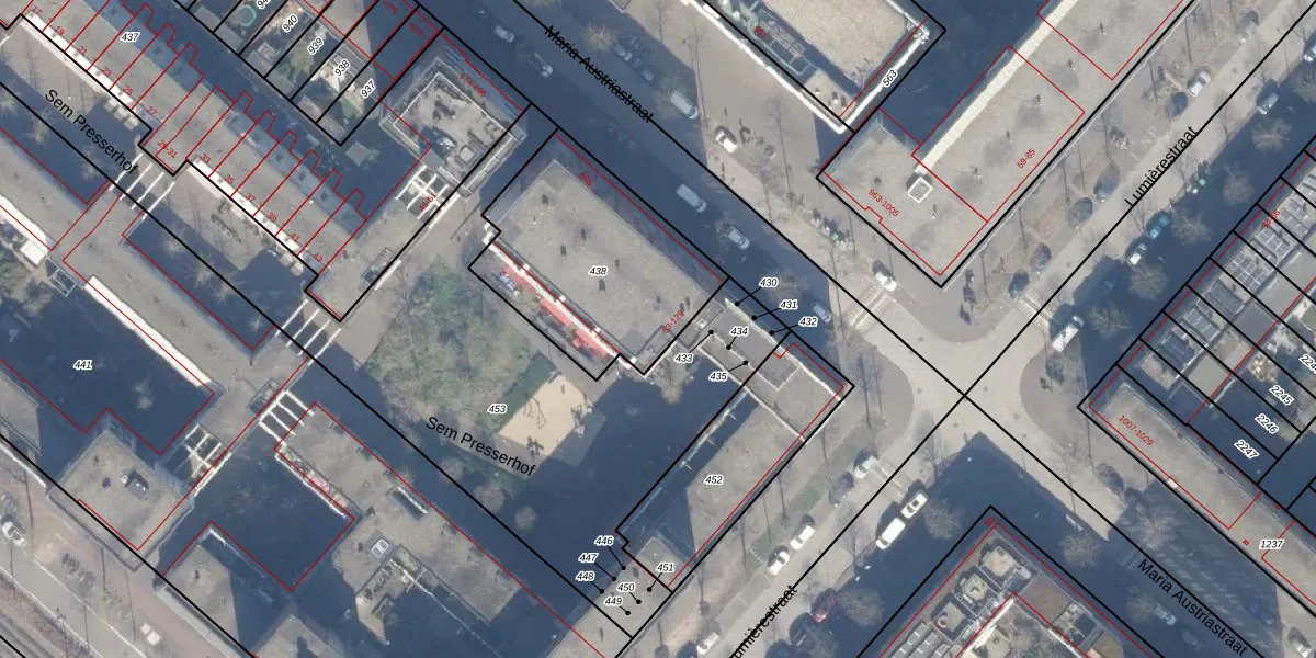 Het adres ligt op het perceel ASD41-AU-438, dat zich in de kadastrale gemeente Amsterdam bevindt. De gemiddelde perceelgrootte in Amsterdam is 7292,22 m². Dit perceel is kleiner: de perceeloppervlakte bedraagt 815 m². Het grootste perceel in de kadastrale gemeente is 2,75 km². Het kleinste perceel heeft een oppervlakte van 0 m². Op het perceel liggen in totaal 32 adressen. In de Basisregistratie Kadaster (BRK) werden de grenzen van het perceel geregistreerd op 31-03-2006.