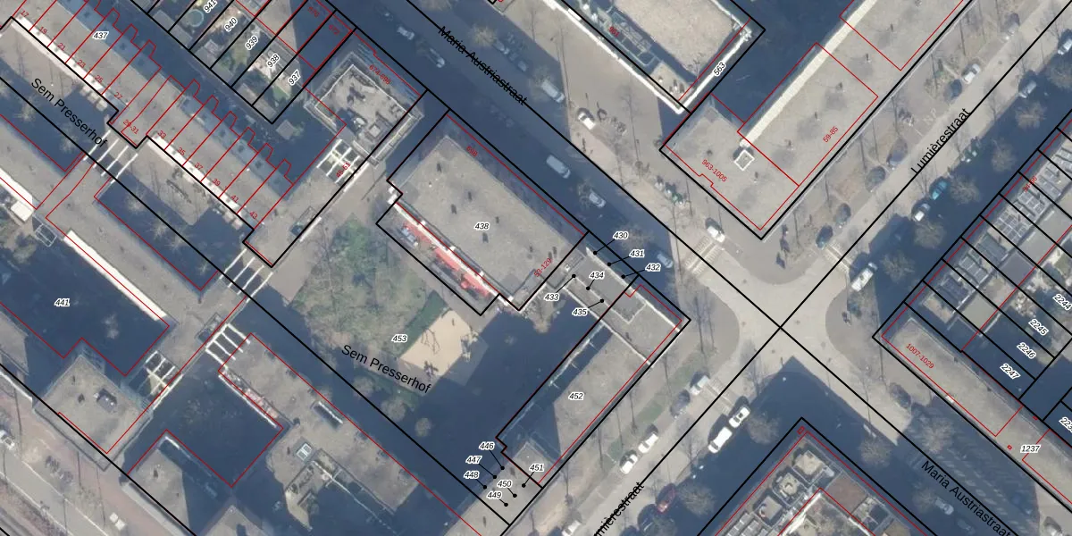 Sem Presserhof 89 is gelegen op kadastraal perceel ASD41AU438. Deze kadastrale aanduiding is uniek en wordt gebruikt door het Kadaster om eigendomsrechten en andere zakelijke rechten vast te leggen. Het perceel maakt onderdeel uit van de kadastrale gemeente Amsterdam.