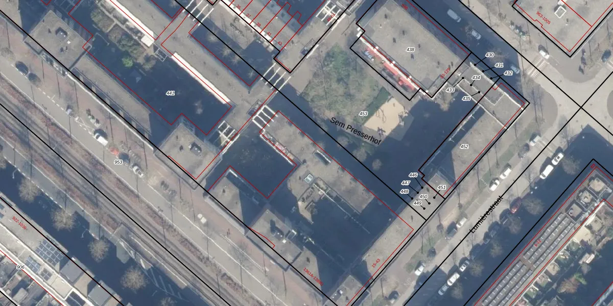 Sem Presserhof 90 is gelegen op kadastraal perceel ASD41AU441. Deze kadastrale aanduiding is uniek en wordt gebruikt door het Kadaster om eigendomsrechten en andere zakelijke rechten vast te leggen. Het perceel maakt onderdeel uit van de kadastrale gemeente Amsterdam.