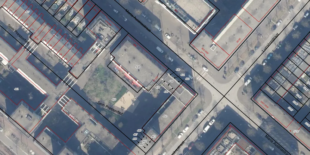 Sem Presserhof 97 is gelegen op kadastraal perceel ASD41AU438. Deze kadastrale aanduiding is uniek en wordt gebruikt door het Kadaster om eigendomsrechten en andere zakelijke rechten vast te leggen. Het perceel maakt onderdeel uit van de kadastrale gemeente Amsterdam.