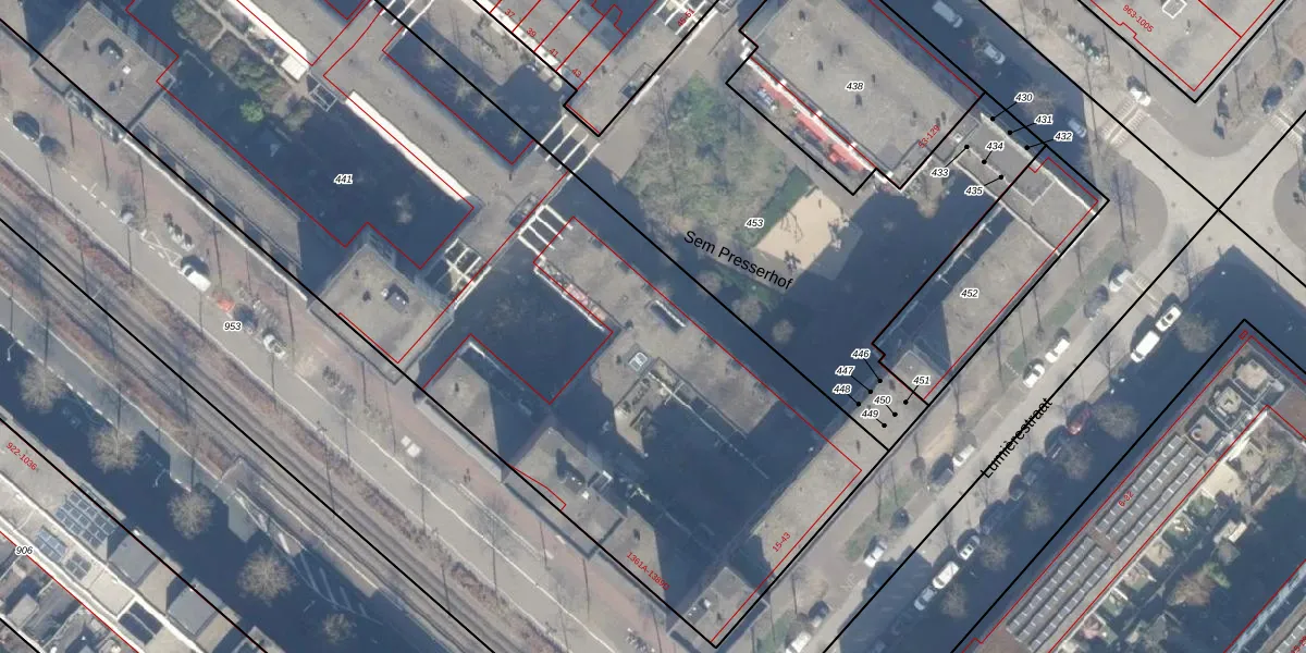 Het perceel waarop Sem Presserhof 98 staat heeft een oppervlakte van 7077 m². Dit is een zeer groot perceel. De perceeloppervlakte wordt geregistreerd door het Kadaster. Gedetailleerde informatie over de maten van dit perceel kunt u vinden in het rapport Kadastrale kaart met maatvoering van Sem Presserhof 98.