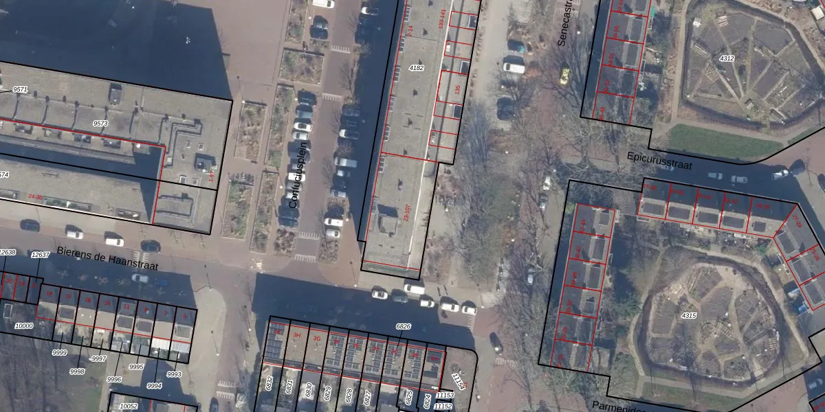 Het perceel waarop Senecastraat 123 staat heeft een oppervlakte van 1697 m². Dit is een zeer groot perceel. De perceeloppervlakte wordt geregistreerd door het Kadaster. Gedetailleerde informatie over de maten van dit perceel kunt u vinden in het rapport Kadastrale kaart met maatvoering van Senecastraat 123.