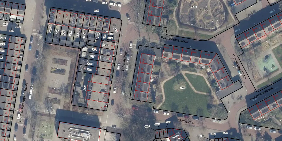 Het perceel waarop Senecastraat 14 staat heeft een oppervlakte van 2974 m². Dit is een zeer groot perceel. De perceeloppervlakte wordt geregistreerd door het Kadaster. Gedetailleerde informatie over de maten van dit perceel kunt u vinden in het rapport Kadastrale kaart met maatvoering van Senecastraat 14.