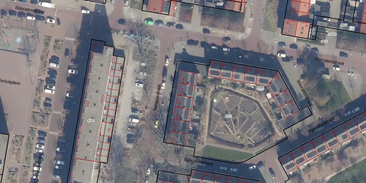 Het perceel waarop Senecastraat 64 staat heeft een oppervlakte van 3203 m². Dit is een zeer groot perceel. De perceeloppervlakte wordt geregistreerd door het Kadaster. Gedetailleerde informatie over de maten van dit perceel kunt u vinden in het rapport Kadastrale kaart met maatvoering van Senecastraat 64.