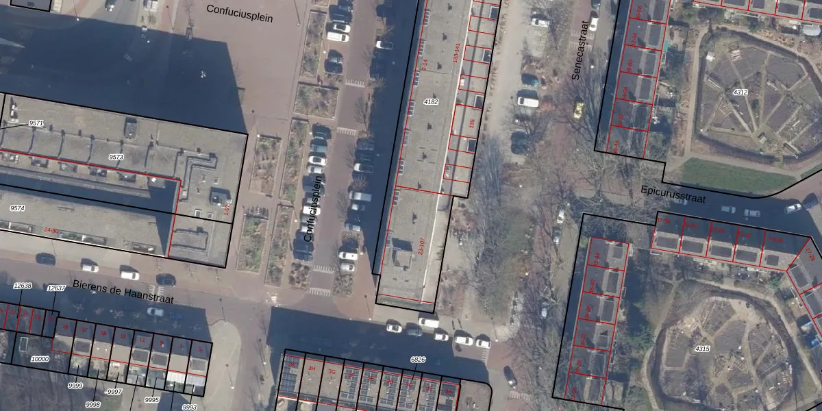 Het perceel waarop Senecastraat 65 staat heeft een oppervlakte van 1697 m². Dit is een zeer groot perceel. De perceeloppervlakte wordt geregistreerd door het Kadaster. Gedetailleerde informatie over de maten van dit perceel kunt u vinden in het rapport Kadastrale kaart met maatvoering van Senecastraat 65.