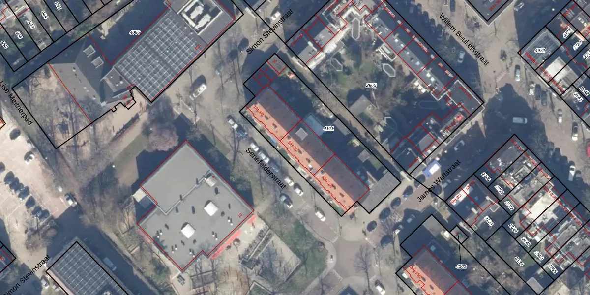 Senefelderstraat 5-H is gelegen op kadastraal perceel WTG02A4121. Deze kadastrale aanduiding is uniek en wordt gebruikt door het Kadaster om eigendomsrechten en andere zakelijke rechten vast te leggen. Het perceel maakt onderdeel uit van de kadastrale gemeente Watergraafsmeer.