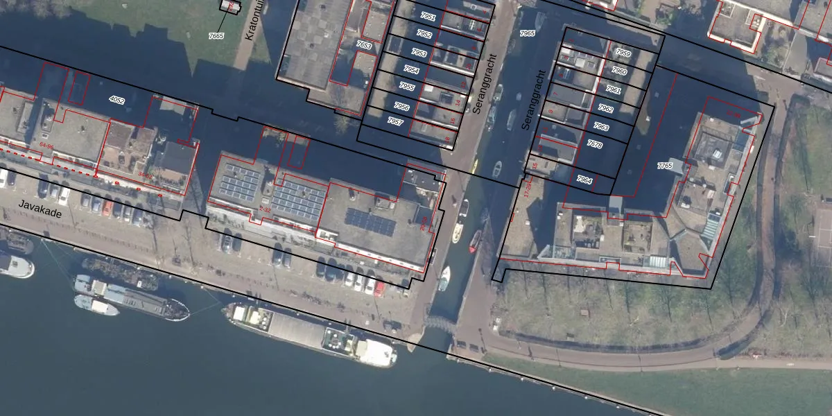 Het perceel waarop Seranggracht 32 staat heeft een oppervlakte van 5268 m². Dit is een zeer groot perceel. De perceeloppervlakte wordt geregistreerd door het Kadaster. Gedetailleerde informatie over de maten van dit perceel kunt u vinden in het rapport Kadastrale kaart met maatvoering van Seranggracht 32.