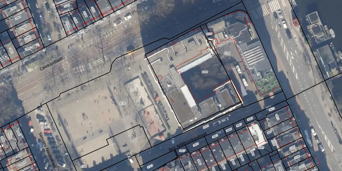 Het adres ligt op het perceel ASD14-R-6848, dat zich in de kadastrale gemeente Amsterdam bevindt. De gemiddelde perceeloppervlakte in de kadastrale gemeente Amsterdam is 354,38 m². Dit perceel is met zijn 1838 m² dus groter dan gemiddeld. De grootste perceeloppervlakte in de kadastrale gemeente is 9,9 ha. De kleinste oppervlakte bedraagt 0 m². Op het perceel zijn 71 adressen aanwezig. De huidige grenzen van het perceel zijn digitaal in de Basisregistratie Kadaster (BRK) geregistreerd op 30-10-2006.