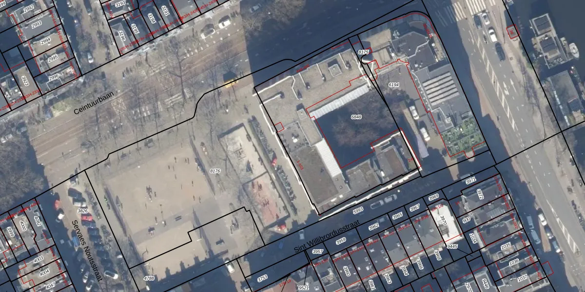 Het adres ligt op het perceel ASD14-R-6848, dat zich in de kadastrale gemeente Amsterdam bevindt. De gemiddelde perceeloppervlakte in de kadastrale gemeente Amsterdam is 354,47 m². Dit perceel is met zijn 1838 m² dus groter dan gemiddeld. De grootste perceeloppervlakte in de kadastrale gemeente is 9,9 ha. De kleinste oppervlakte bedraagt 0 m². Er zijn 71 adressen aanwezig op het perceel. De huidige grenzen van het perceel zijn digitaal in de Basisregistratie Kadaster (BRK) geregistreerd op 30-10-2006.