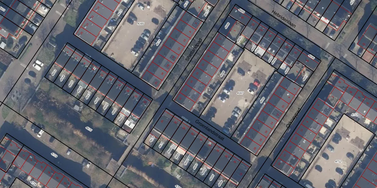 Het perceel waarop Shetlandpad 17 staat heeft een oppervlakte van 746 m². Dit is een groot perceel. De perceeloppervlakte wordt geregistreerd door het Kadaster. Gedetailleerde informatie over de maten van dit perceel kunt u vinden in het rapport Kadastrale kaart met maatvoering van Shetlandpad 17.