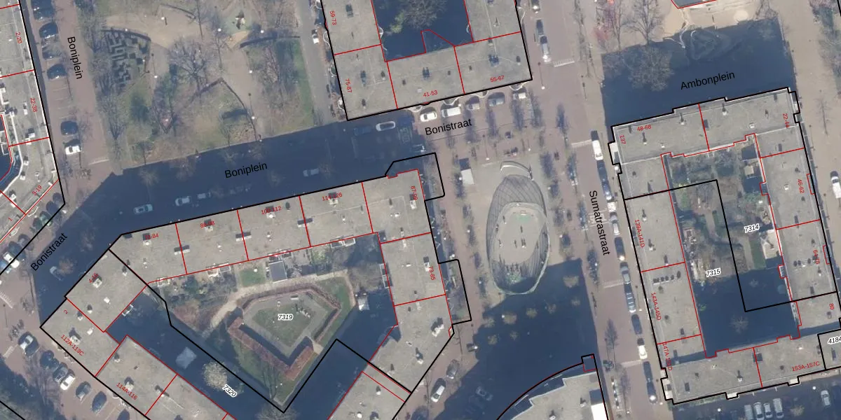 Sibogastraat 95 is gelegen op kadastraal perceel ASD19W7319. Deze kadastrale aanduiding is uniek en wordt gebruikt door het Kadaster om eigendomsrechten en andere zakelijke rechten vast te leggen. Het perceel maakt onderdeel uit van de kadastrale gemeente Amsterdam.