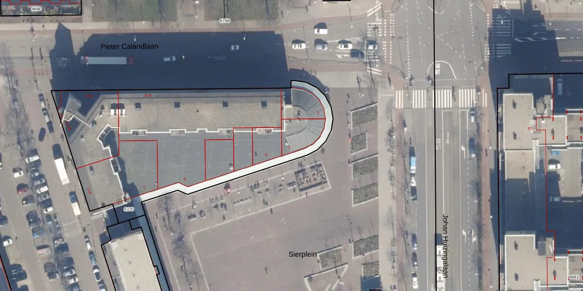 Het perceel waarop Sierplein 2 staat heeft een oppervlakte van 2993 m². Dit is een zeer groot perceel. De perceeloppervlakte wordt geregistreerd door het Kadaster. Gedetailleerde informatie over de maten van dit perceel kunt u vinden in het rapport Kadastrale kaart met maatvoering van Sierplein 2.