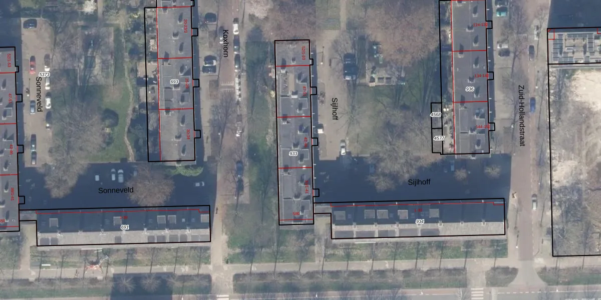 Het perceel waarop Sijlhoff 43-1 staat heeft een oppervlakte van 723 m². Dit is een groot perceel. De perceeloppervlakte wordt geregistreerd door het Kadaster. Gedetailleerde informatie over de maten van dit perceel kunt u vinden in het rapport Kadastrale kaart met maatvoering van Sijlhoff 43-1.