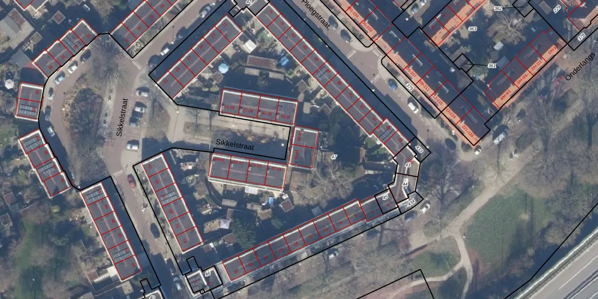 Het perceel waarop Sikkelstraat 45 staat heeft een oppervlakte van 5395 m². Dit is een zeer groot perceel. De perceeloppervlakte wordt geregistreerd door het Kadaster. Gedetailleerde informatie over de maten van dit perceel kunt u vinden in het rapport Kadastrale kaart met maatvoering van Sikkelstraat 45.