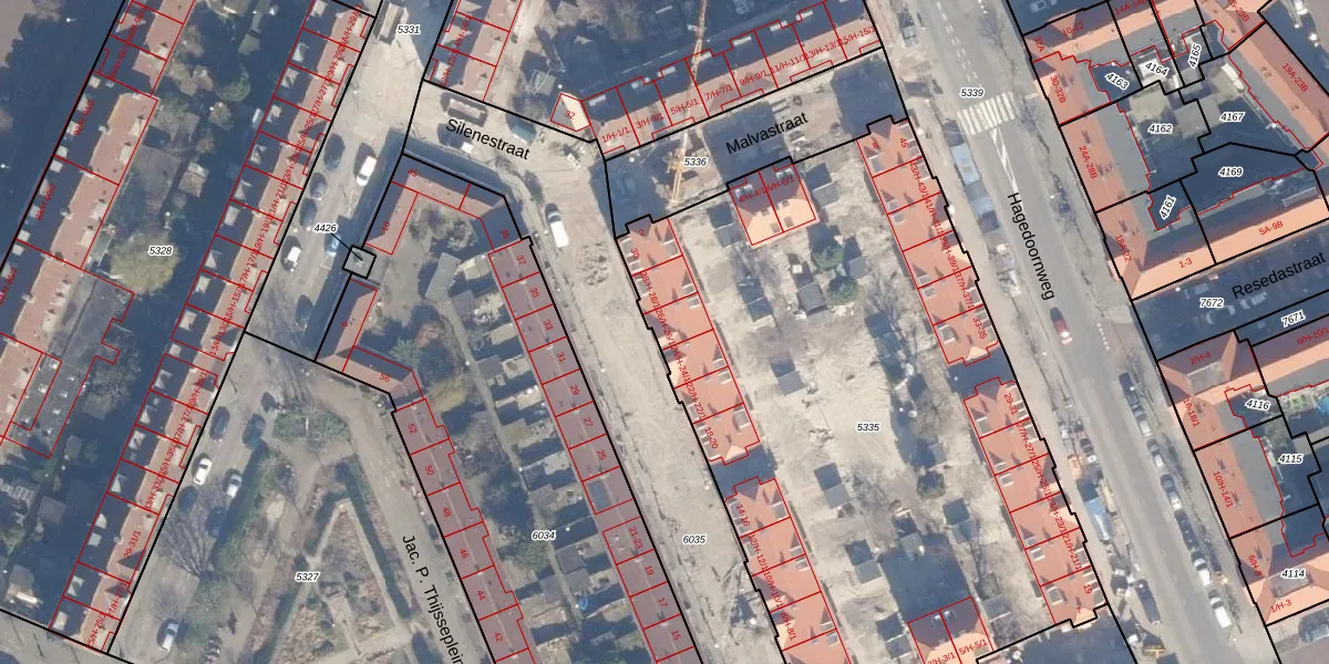 Het perceel waarop Silenestraat 26-1 staat heeft een oppervlakte van 3844 m². Dit is een zeer groot perceel. De perceeloppervlakte wordt geregistreerd door het Kadaster. Gedetailleerde informatie over de maten van dit perceel kunt u vinden in het rapport Kadastrale kaart met maatvoering van Silenestraat 26-1.