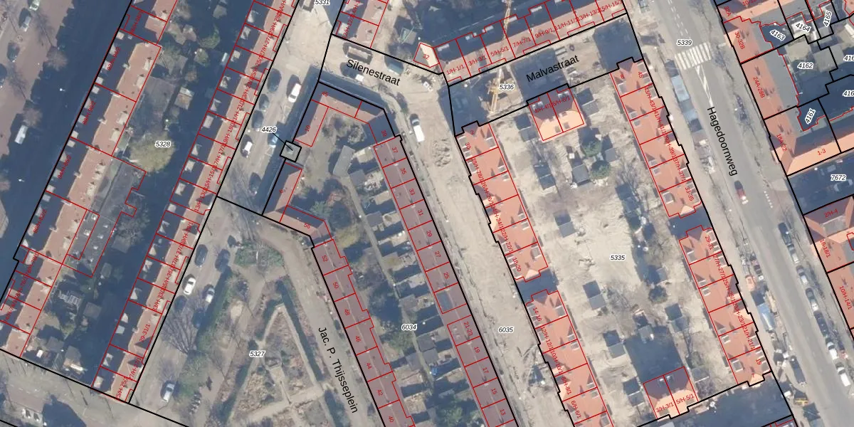 Het perceel waarop Silenestraat 31 staat heeft een oppervlakte van 3203 m². Dit is een zeer groot perceel. De perceeloppervlakte wordt geregistreerd door het Kadaster. Gedetailleerde informatie over de maten van dit perceel kunt u vinden in het rapport Kadastrale kaart met maatvoering van Silenestraat 31.