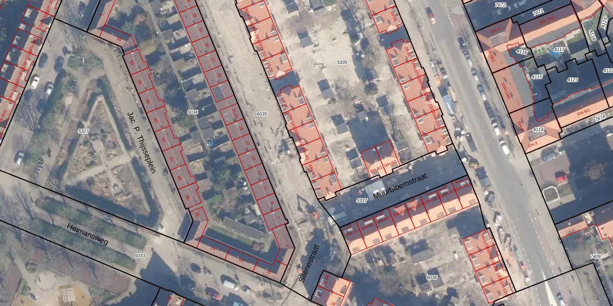Het perceel waarop Silenestraat 8-1 staat heeft een oppervlakte van 3844 m². Dit is een zeer groot perceel. De perceeloppervlakte wordt geregistreerd door het Kadaster. Gedetailleerde informatie over de maten van dit perceel kunt u vinden in het rapport Kadastrale kaart met maatvoering van Silenestraat 8-1.