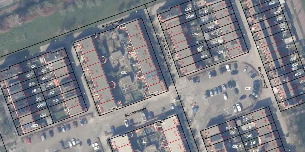Het perceel waarop Silvoldestraat 59 staat heeft een oppervlakte van 2443 m². Dit is een zeer groot perceel. De perceeloppervlakte wordt geregistreerd door het Kadaster. Gedetailleerde informatie over de maten van dit perceel kunt u vinden in het rapport Kadastrale kaart met maatvoering van Silvoldestraat 59.