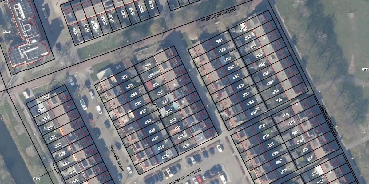 Gebruik de zoekbalk of klik op een perceel voor informatie over de adressen binnen dit perceel.