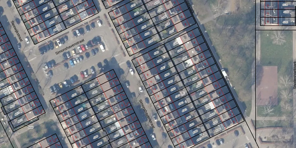 Gebruik de zoekbalk of klik op een perceel voor informatie over de adressen binnen dit perceel.