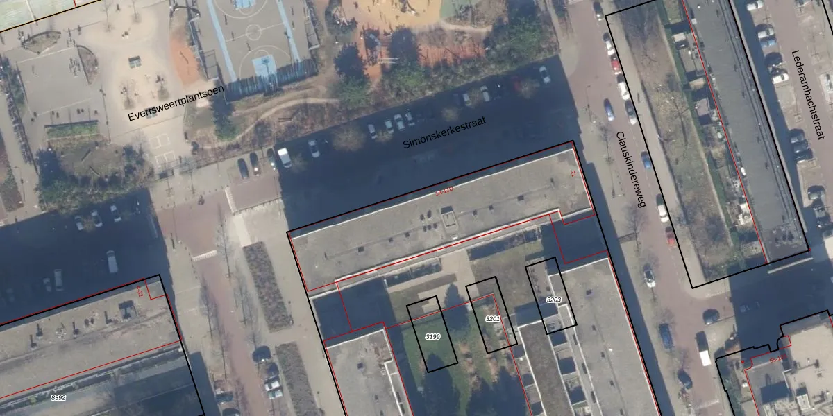Het perceel waarop Simonskerkestraat 3-A staat heeft een oppervlakte van 9270 m². Dit is een zeer groot perceel. De perceeloppervlakte wordt geregistreerd door het Kadaster. Gedetailleerde informatie over de maten van dit perceel kunt u vinden in het rapport Kadastrale kaart met maatvoering van Simonskerkestraat 3-A.