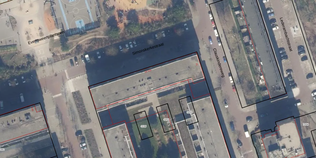Het perceel waarop Simonskerkestraat 9-E staat heeft een oppervlakte van 9270 m². Dit is een zeer groot perceel. De perceeloppervlakte wordt geregistreerd door het Kadaster. Gedetailleerde informatie over de maten van dit perceel kunt u vinden in het rapport Kadastrale kaart met maatvoering van Simonskerkestraat 9-E.